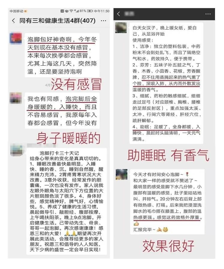 入睡快了、身体通畅了、脚气好了、泡了一个冬天不容易感冒了、足浴包太纯太香了……怎么说的都有。