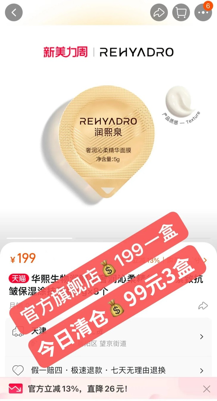 华熙生物199的胶原炮弹面膜,我们争取了1000份,清仓价99元/3盒!
