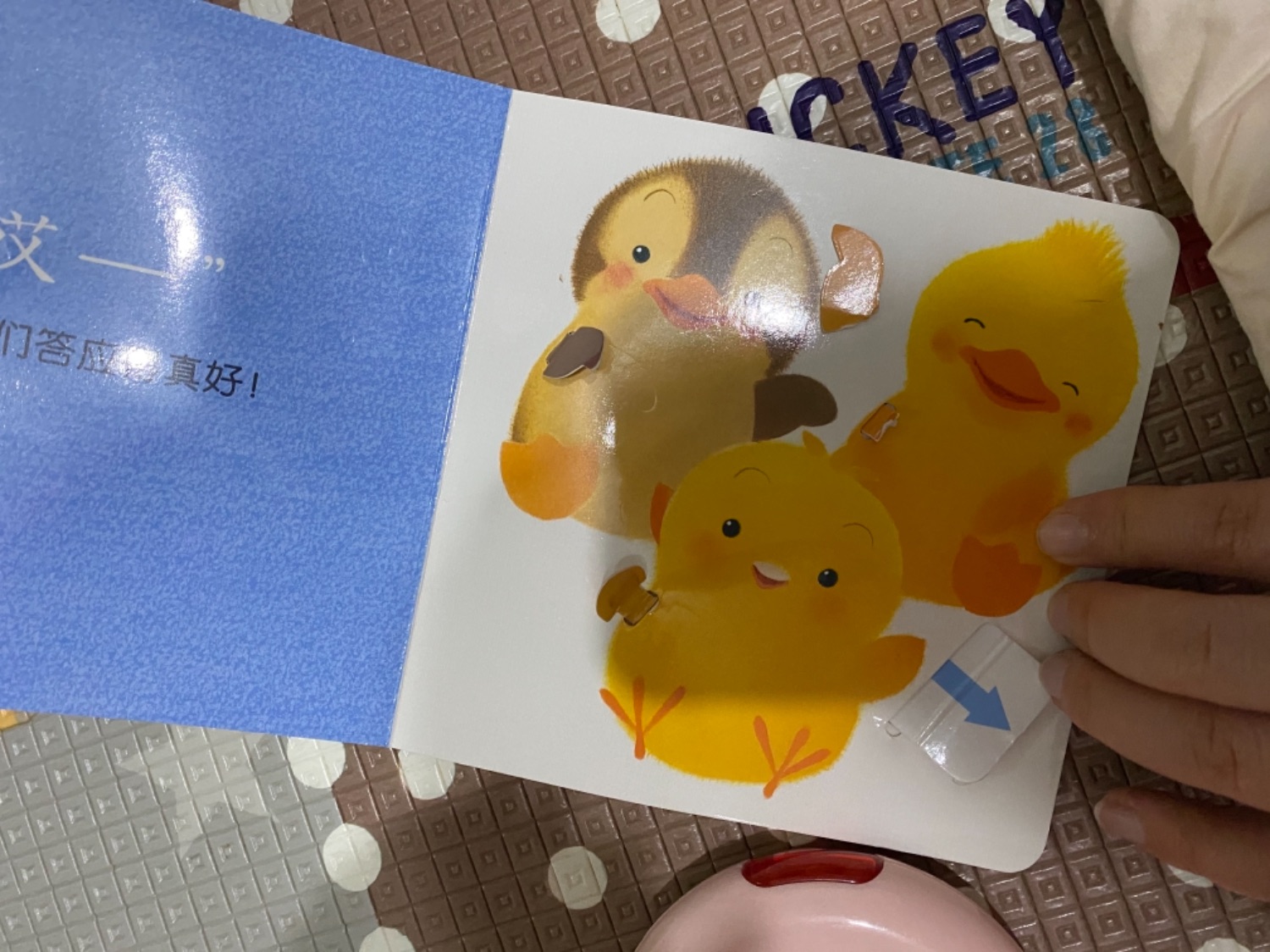 同时我又拿来胶布当着她的面补好书,并说以后小鸭的手就都动不了了……