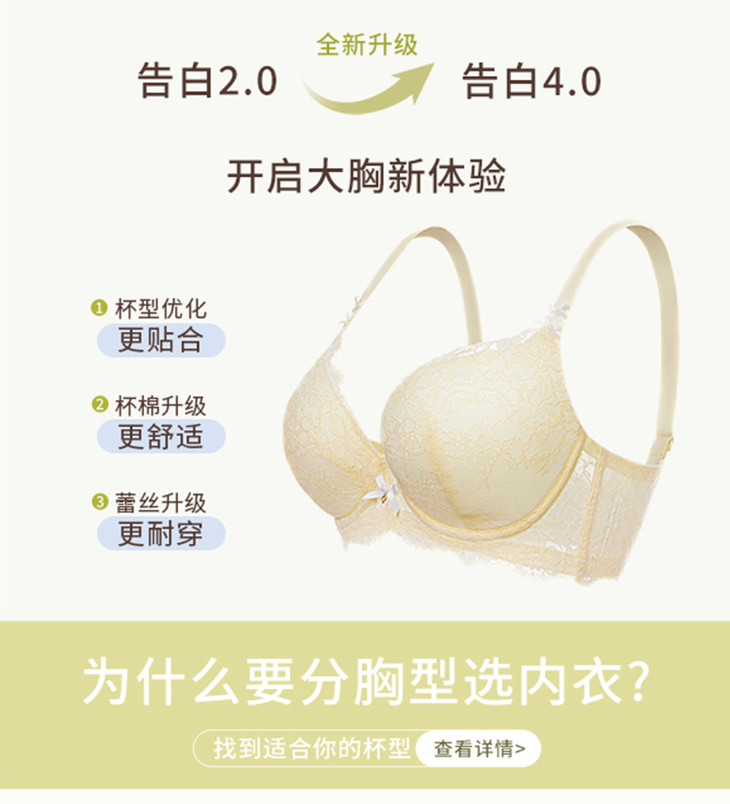 专利分胸型圆盘/半球/木瓜3种胸型设计,更舒适贴合,稳定上托