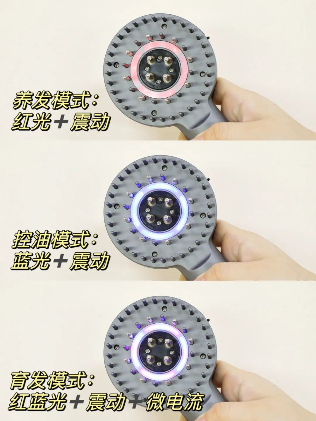 这不是一款普通的梳子,它结合红光蓝光技术和EMS微电流,为你的头皮带来柔和的刺激。