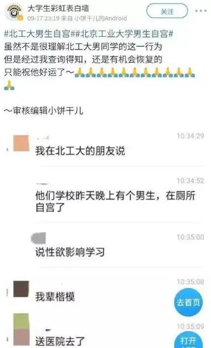 前段时间,北工大一名学生,觉得「性」欲影响学习,于是在一间厕所里,拿着刀,手起刀落,就把自己给......