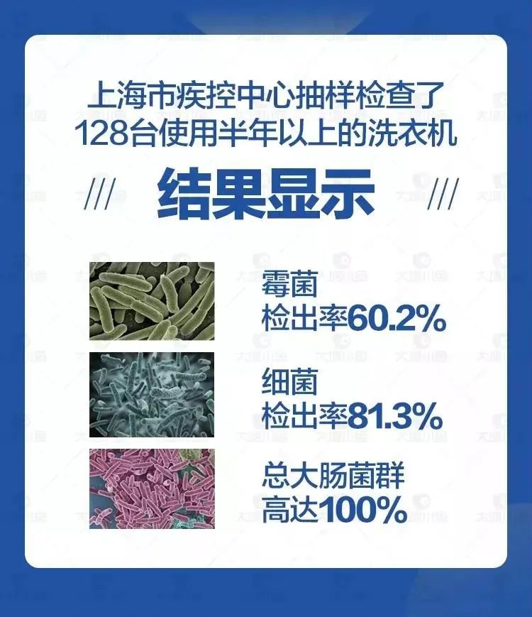 疾控中心曾对128台用了半年的洗衣机进行抽检,发现病菌超标率81.3%,肮脏程度超过马桶530倍!