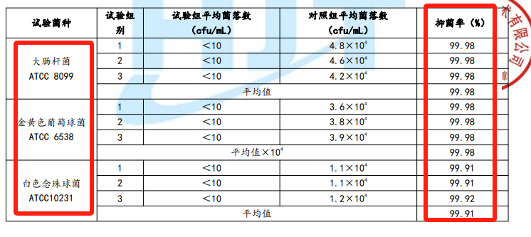 经过ICAS专业权威机构检测,试验浓度1:500,对常见的三种病菌除菌率高达99.98%!