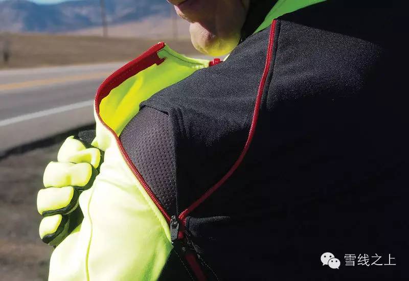 高山滑雪时作为外层,这样既能够阻挡寒风同时还很舒适,不阻碍复杂动作的发挥。