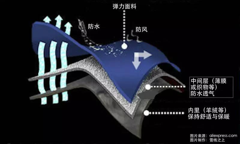 其中,中间层面料上(通常为TPU与PTFE两种)的聚酯纤维绒毛很关键。