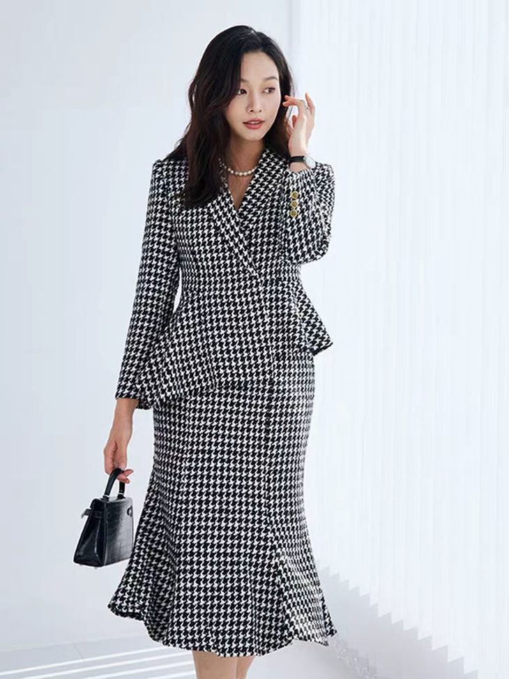 早上我给大家推荐的黑白千鸟格套装