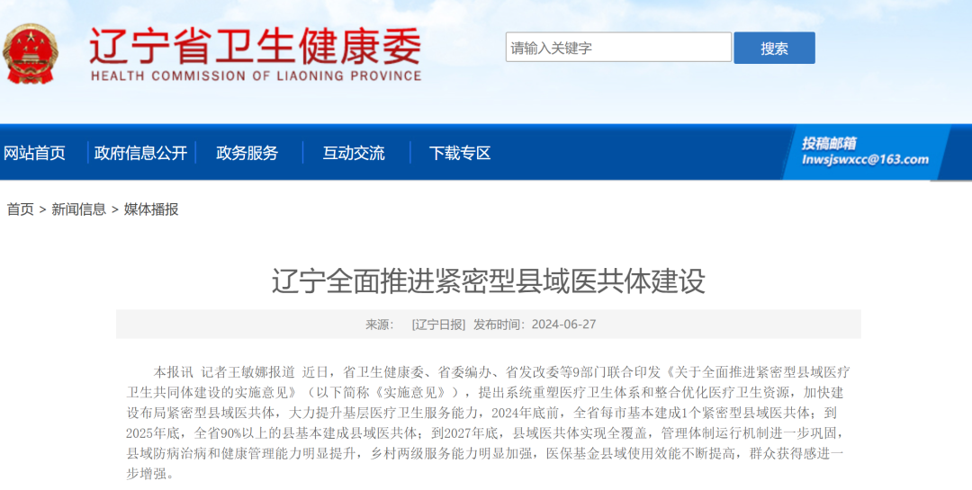 近日,辽宁省卫生健康委、省委编办、省发改委等9部门联合印发《关于全面推进紧密型县域医疗卫生共同体建设的实施意见》(以下简称《意见》),提出要重塑和整合医疗卫生资源,加快建设县域医共体。