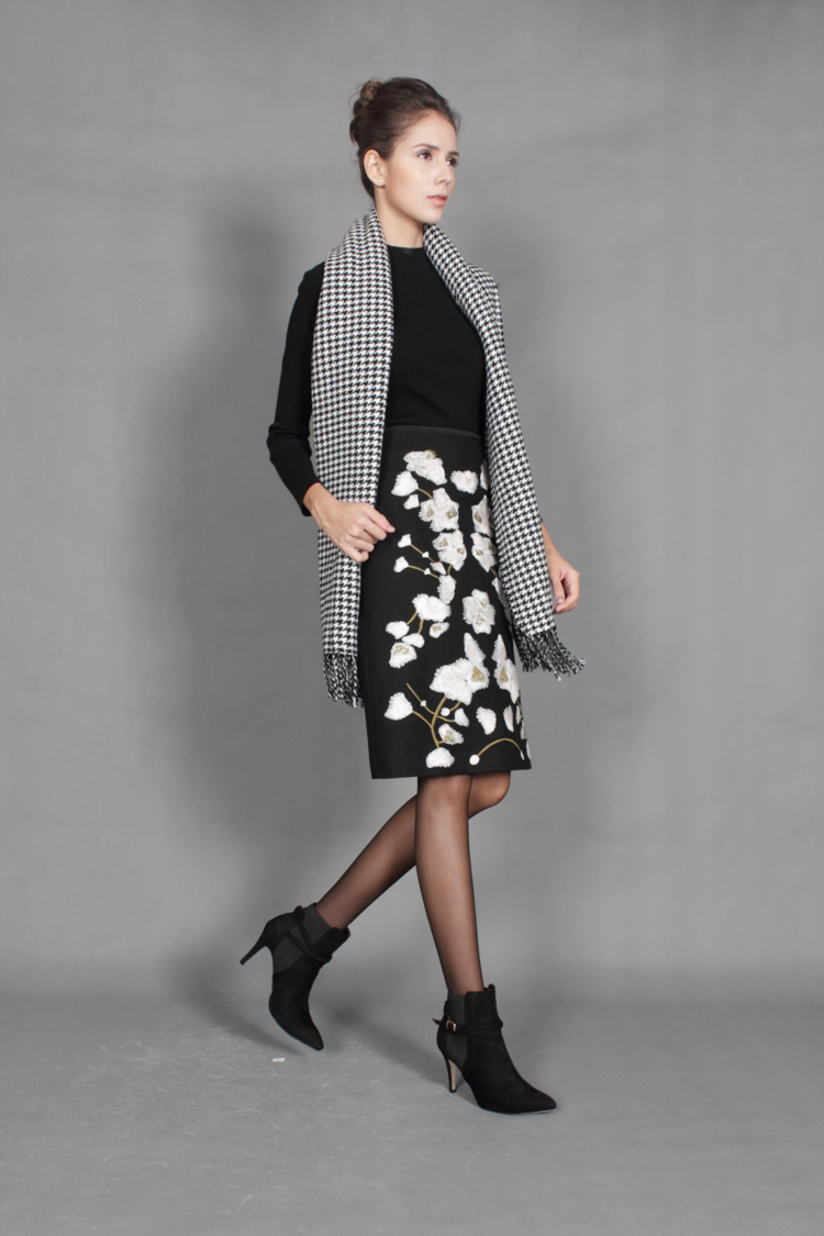 源于公元前5000年乌鲁克雪花石膏大瓶的雪花绣,绝对配得上你的艺术眼光。仿雪花式立体绣,点缀出你独特的知性。收身包臀,勾勒出你婀娜身段,通勤百搭。麦尔登呢料,温暖一秋。