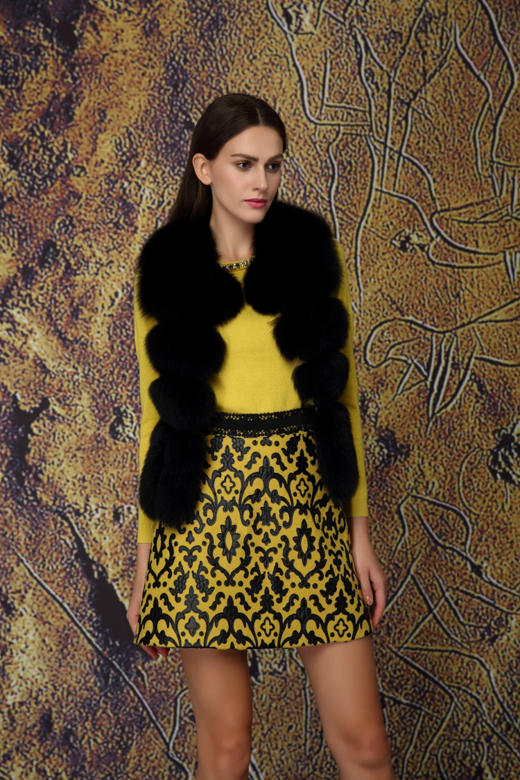 丝光羊毛,舒适保暖,高明黄色颜色,提亮肤色。领口钉珠,显示奢华感强大。贴身版型,贴心内搭。