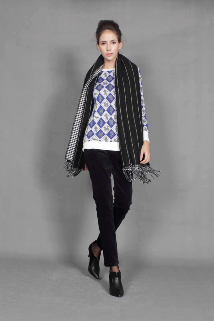 灵感来源于公元前1400年乌加里特字母表,运用人类首份字母表的图案元素及排列方式,结合芝麻底提花技术,艺术化的再现人类灿烂的古文明。让你对艺术理解与体验绝对的与众不同。兔绒包芯纱,细腻舒适有品质感。德国电脑机芝麻底提花,密实贴身保暖。一寸领高,一分高贵。