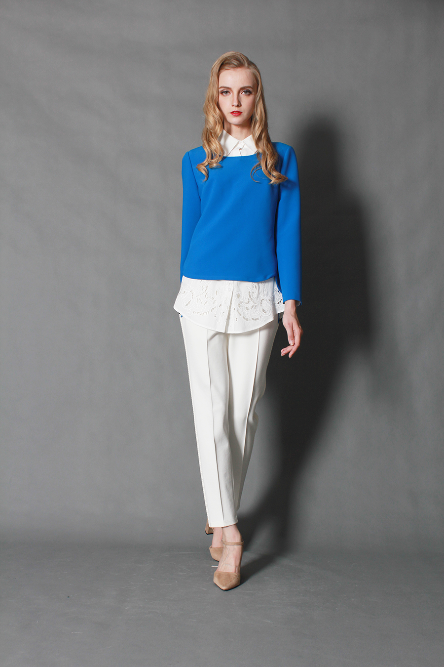 源自4700年前乌尔王军旗的天青色,显出你挑剔的艺术色感。针织毛料,舒适保暧。精致花边,点缀你对精致的要求。时尚廓形,让您行走中散发时尚魅力韵味。