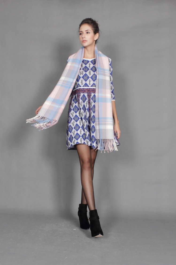 圆领设计,展现颈部优美曲线。精拼镶边,显示你的精致。经典格子毛呢,永不过时。随身版型,将的身型妥妥收纳。宽大下摆,让你气场十足。