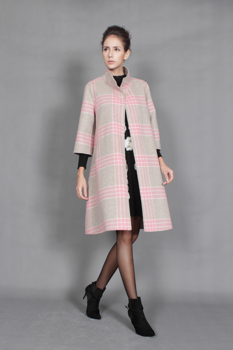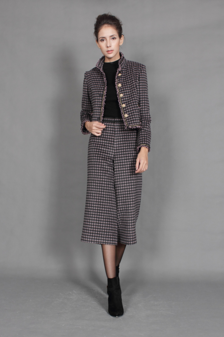 小立领,简约高贵,精拼镶边,显示你的精致。经典格子毛呢,永不过时。典型小香版,尽显你优雅气质。