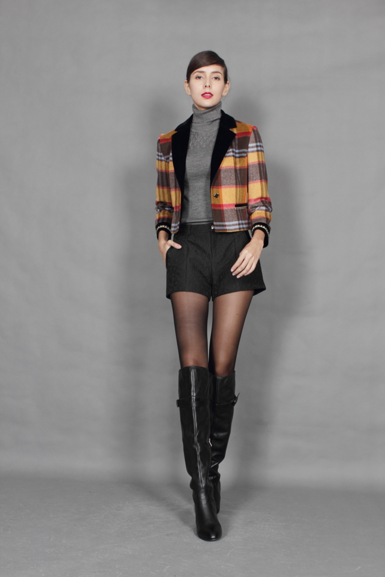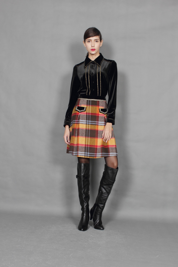 丝绒拼配,显示你的精致。经典格子毛呢,品质永不过时。随身版型,将的身型妥妥收纳。衣长变短,彰显你的率性。