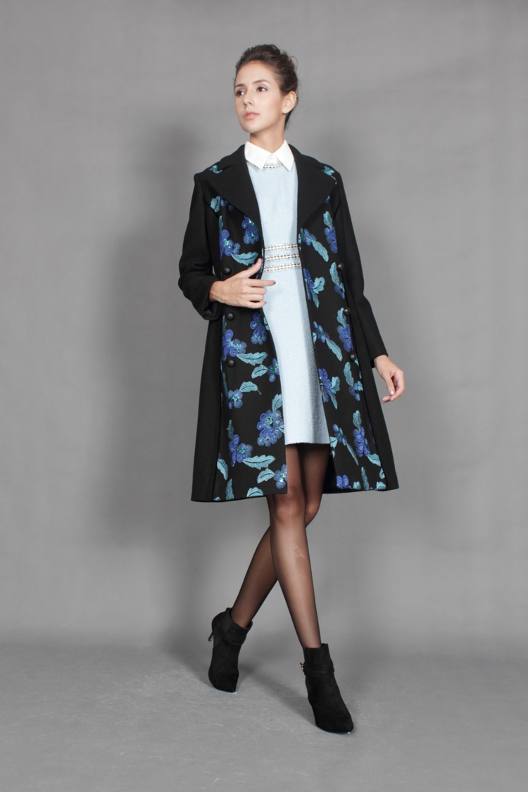 运用人类首例马赛克建筑艺术色彩原理,显出你的清新脱俗。麂皮绒,触感舒适,修身A摆廓形,让衣形去展示你拉风的身形。高贵大翻领,显示你对品质的要求。