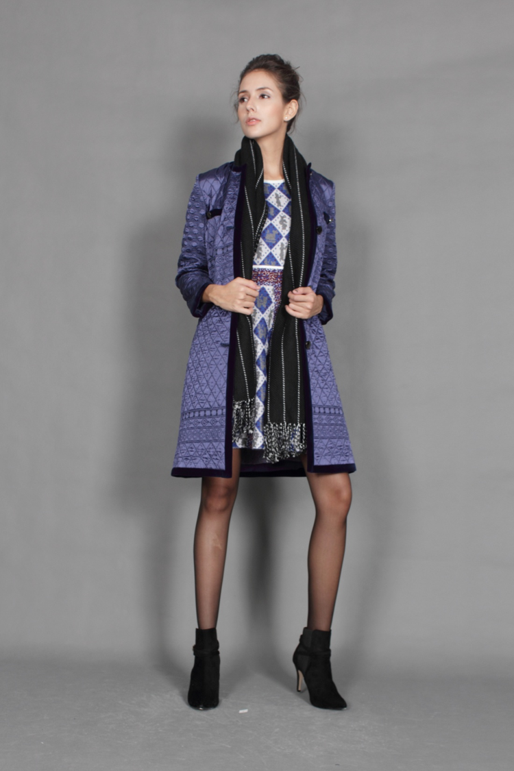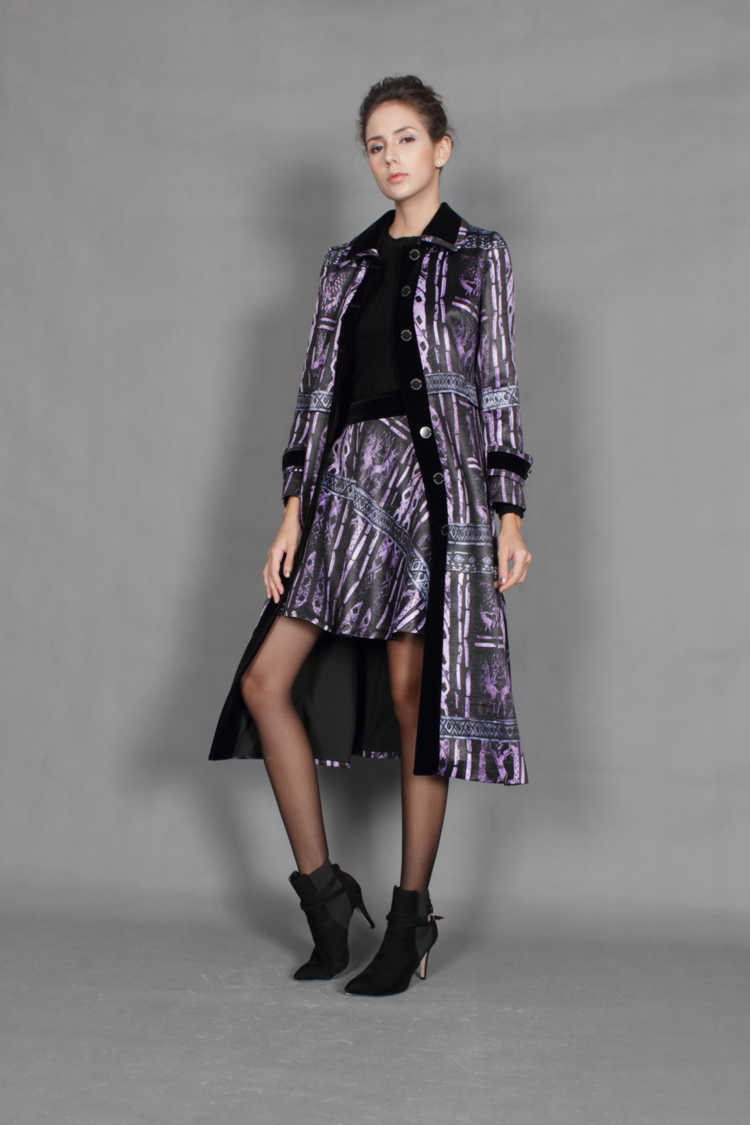 源自3500年前乌尔竖琴古贝紫,足以衬托你的高贵典雅。绸棉圆绣,让你的温暧轻松远离臃肿。腰袖配边,袋边精收,精致随时都是的必选项。立领、塑身,A摆,时尚大气随侍你左右。