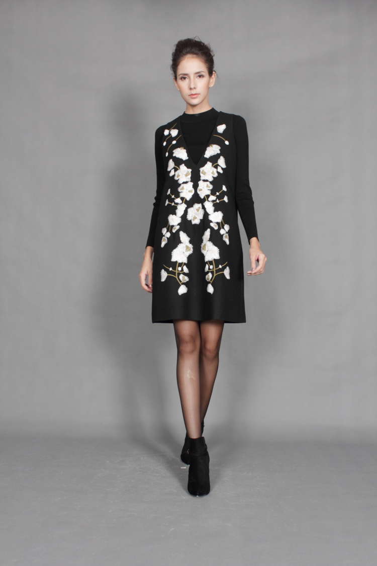 源于公元前5000年乌鲁克雪花石膏大瓶的雪花绣,绝对配得上你的艺术眼光。仿雪花式立体绣,点缀出你独特的知性。别致深V造型,为你量身定作的精致优雅。收身包臀,勾勒出你婀娜身段,通勤百搭。麦尔登呢料,温暖一秋。