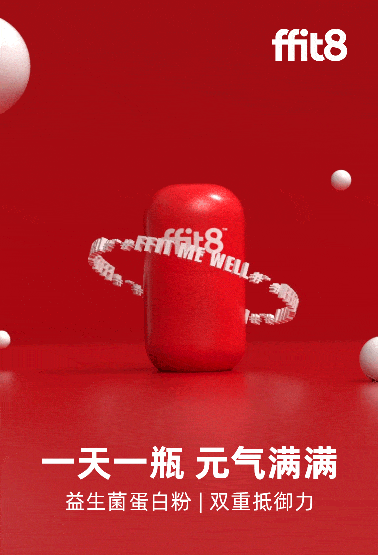 健康食品公司ffit8新推出的「益生菌蛋白粉」。在聚焦高效的蛋白质补充之外,更将优化肠道健康提升免疫力作为核心。「一瓶双享」让益生菌+优质蛋白的补充更加便携,无论男女老少都能随时随地来上一杯!