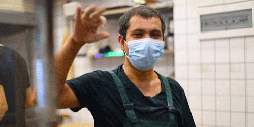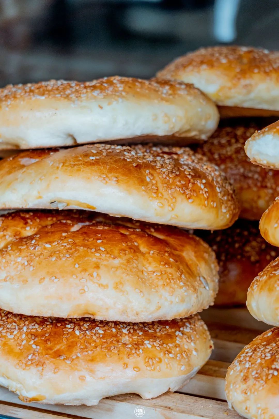 负责做馕的师傅阿布瓦力,从15岁就开始做馕,已经做了20多年了。由于店里人手不够,所以只做芝麻窝窝油馕和芝麻油馕2种。窝窝油馕口感更松软,芝麻油馕则更香脆。