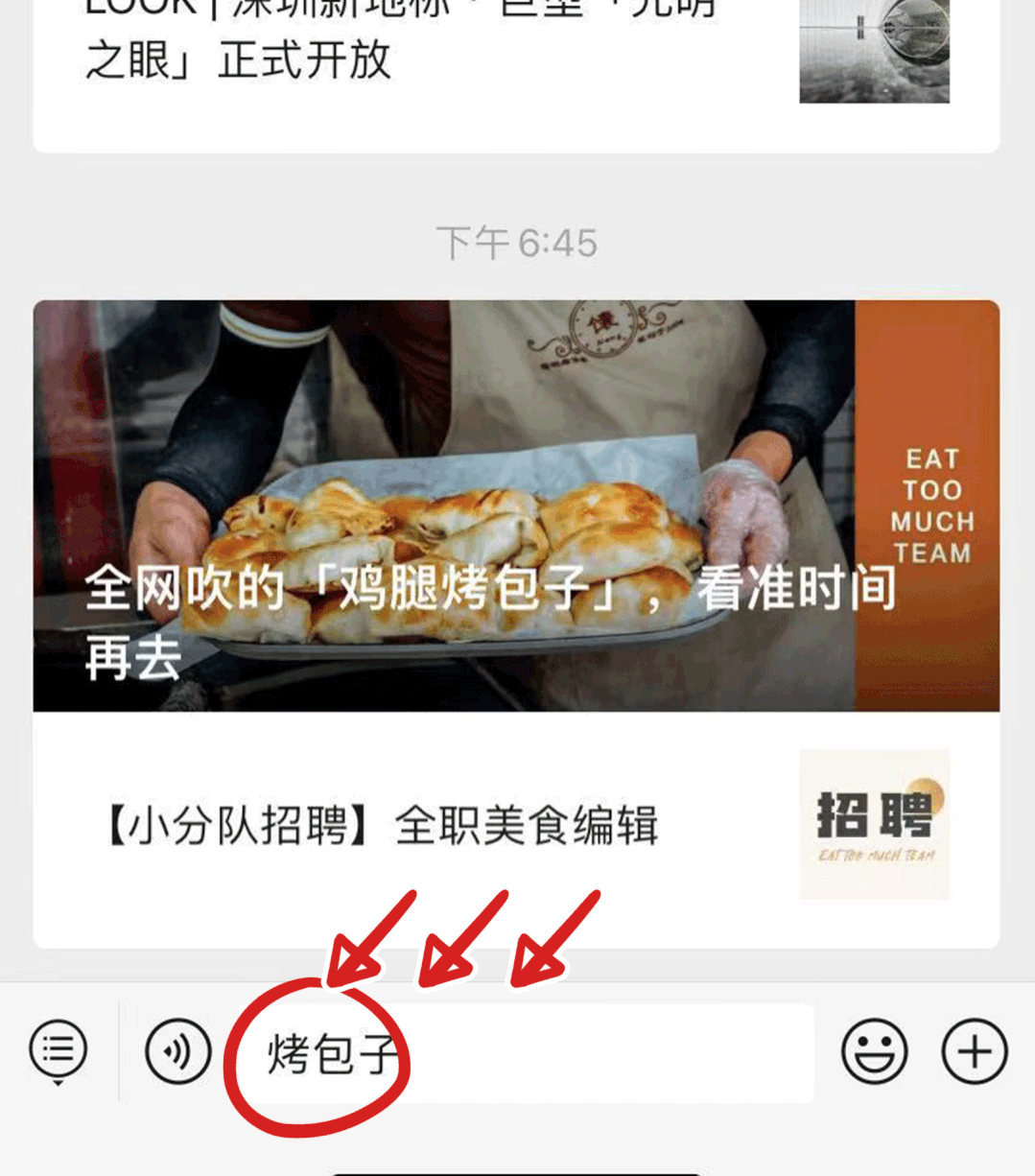 在公众号【深圳吃货小分队】后台对话框