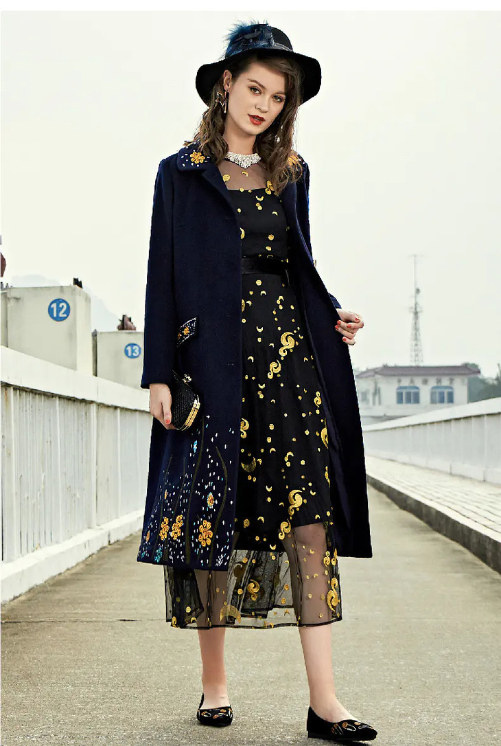 大衣长一点,今年流行长款大衣,裙子的长度尽量与大衣错开,避免齐平,这样才有层次感。