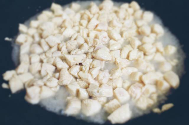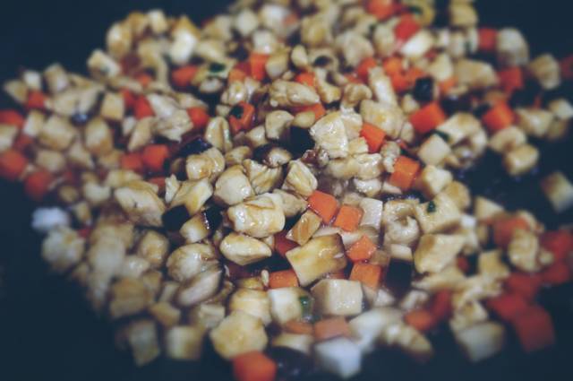 1、鸡胸肉切小丁后用盐和料酒腌制5分钟;
