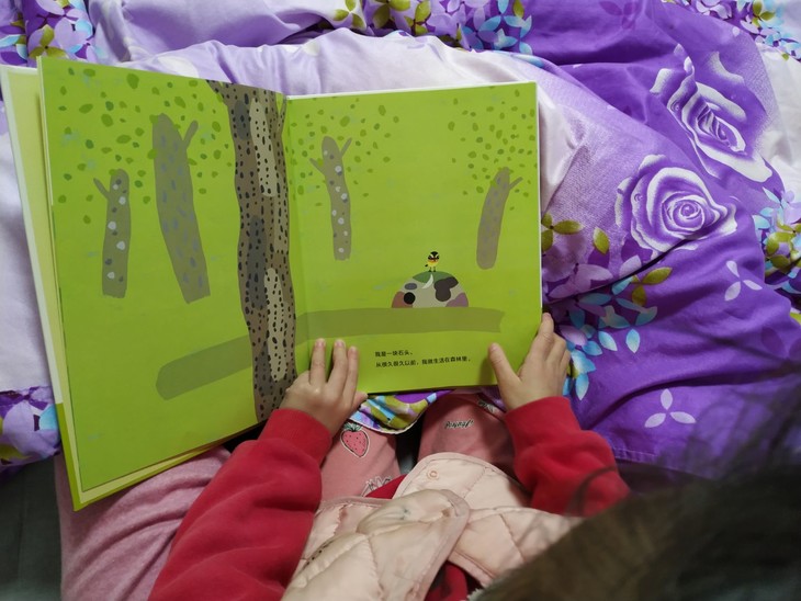 一块石头每天都有很多事情,那宝宝一下子想到小区的石头,每天有很多人走过路过有蚂蚁爬过。