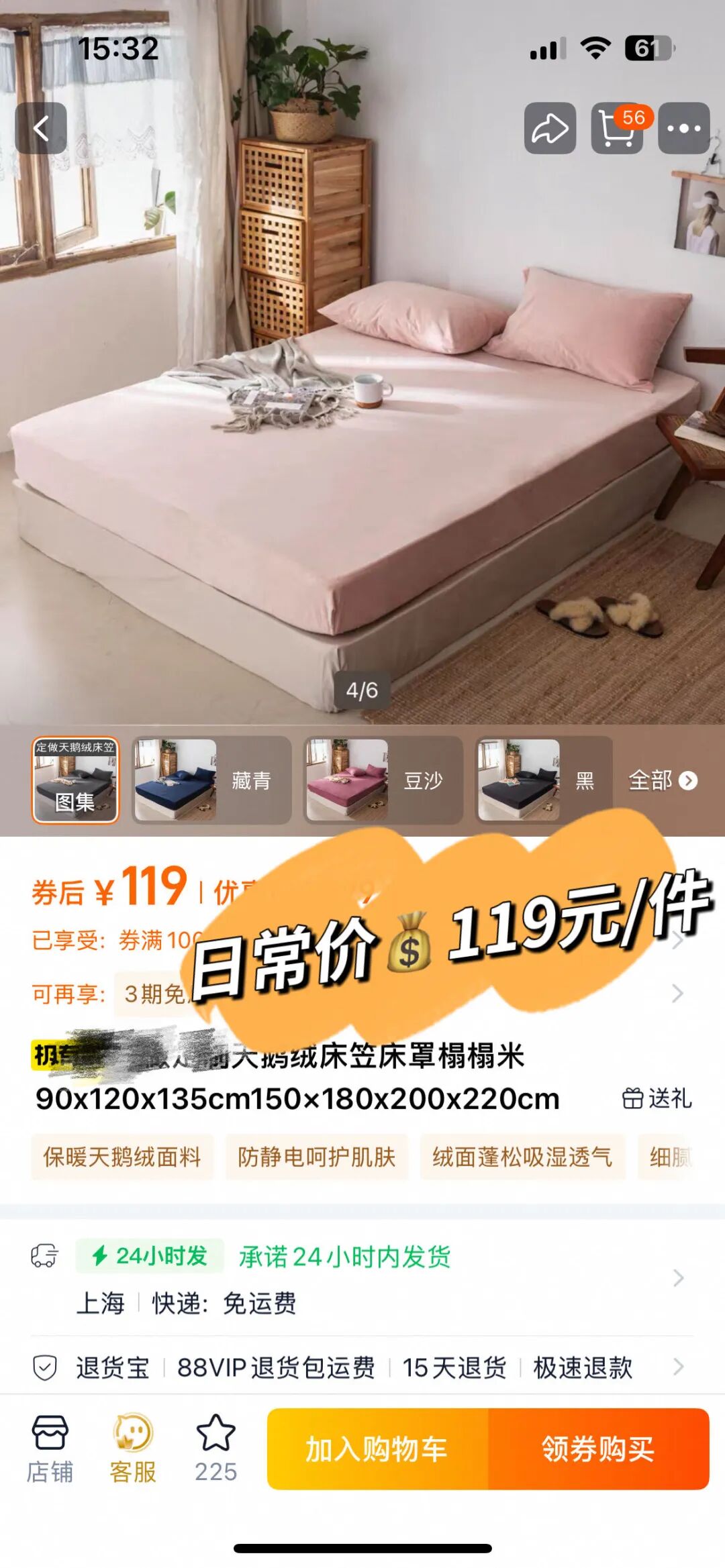 性价比也很高,目前这款在线下门店都要199元一床,网上同款基本都是在售119元,而且很多颜色都断货了~