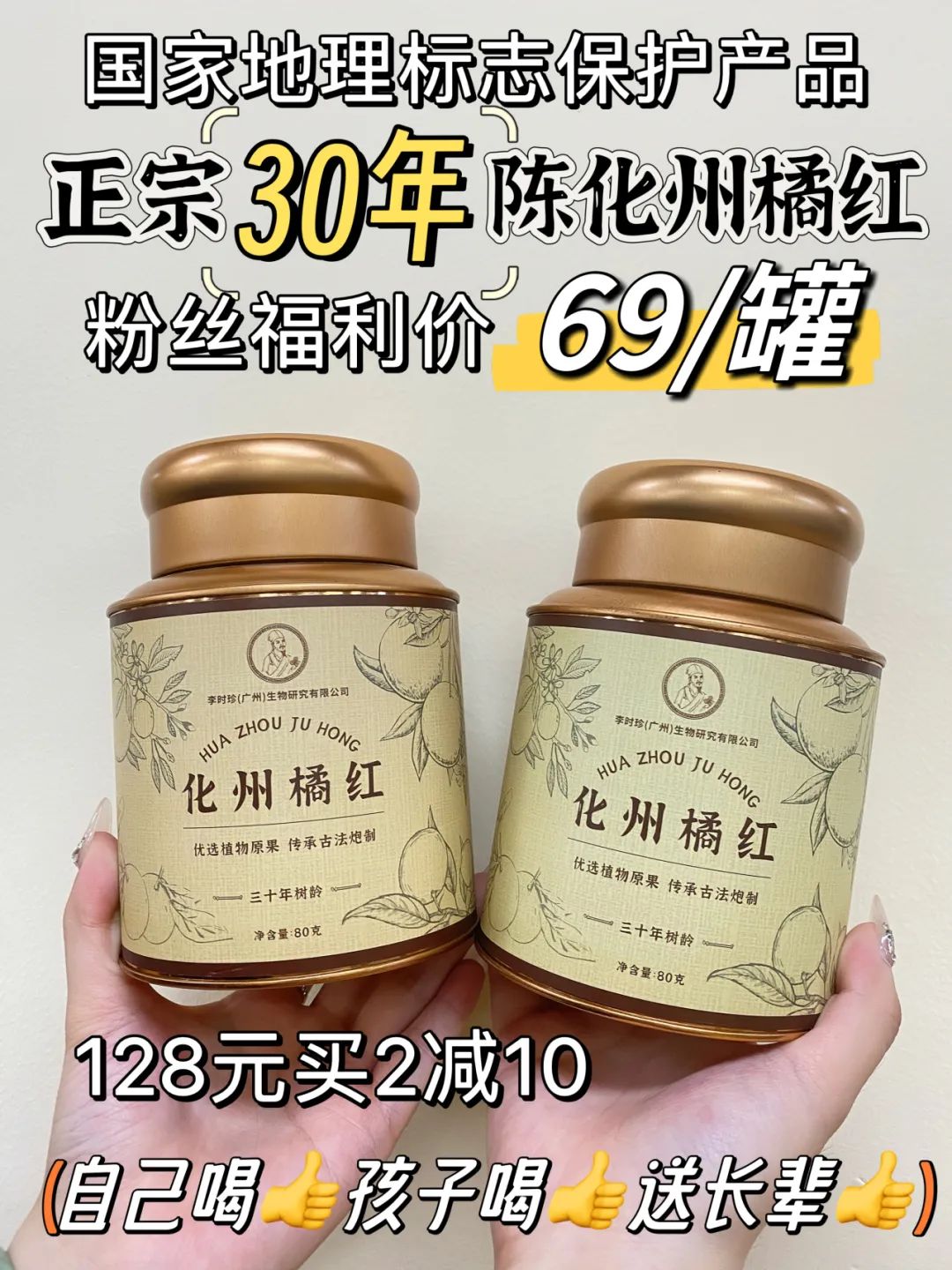 咱们这款零售价💰298的正宗30年陈化州橘红,我们和品牌方争取了2个月,给家人们谈下来的粉丝福利价是69/罐,约2.3折!