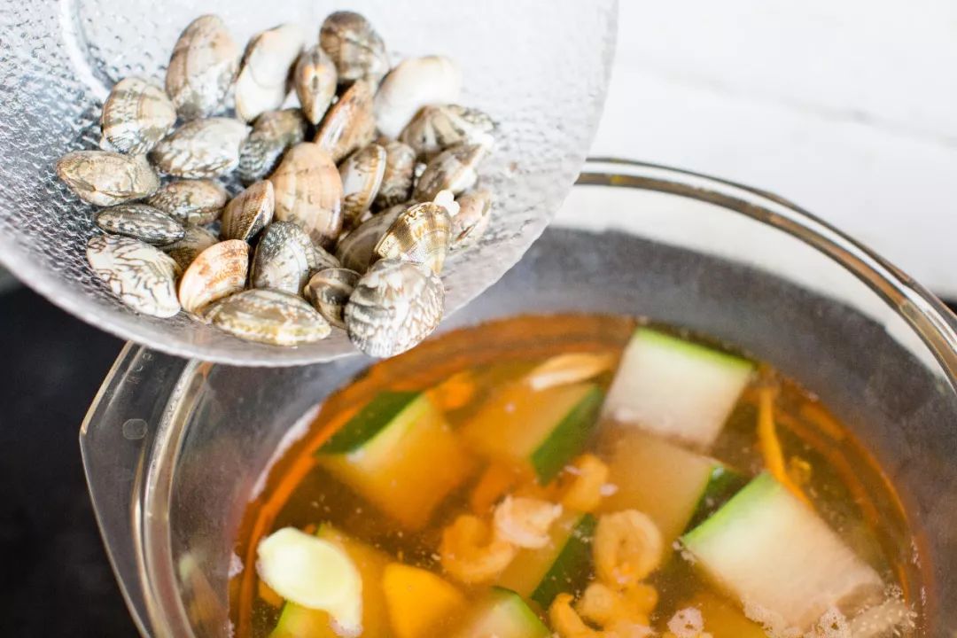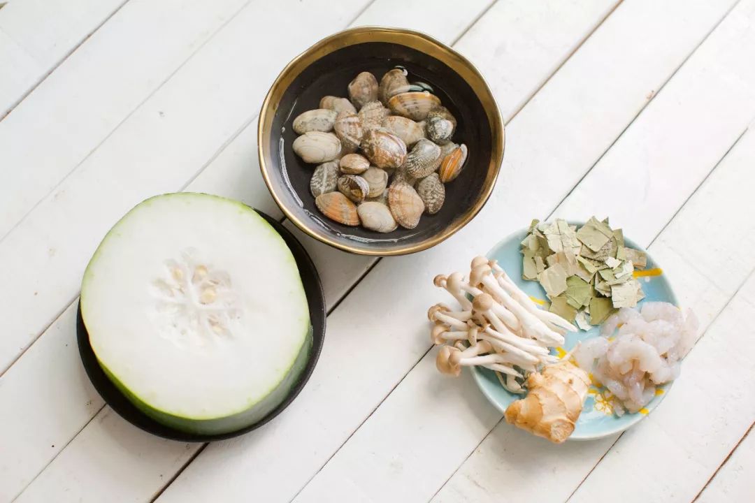 冬瓜 200g / 花蛤 150g / 蟹腿菇 50g