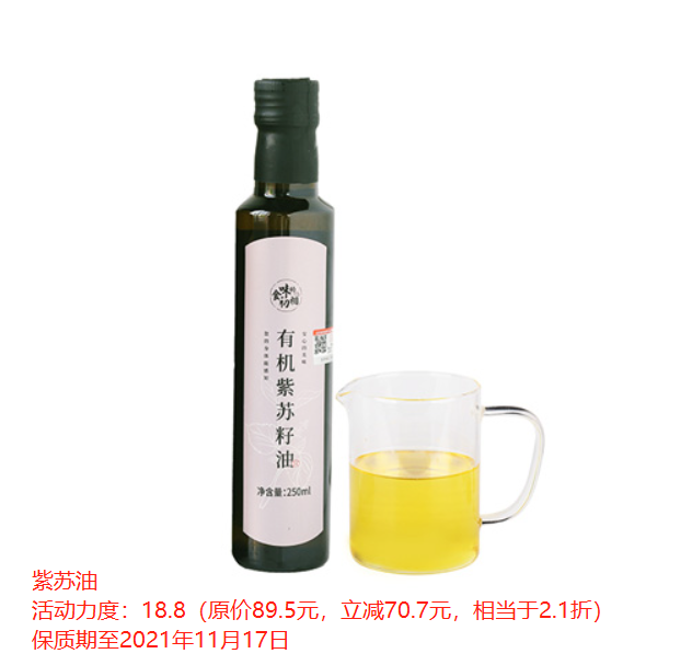 我们这款是有机紫苏油,富含亚麻酸,非常适合给宝宝做辅食,对眼脑发育很帮助。
