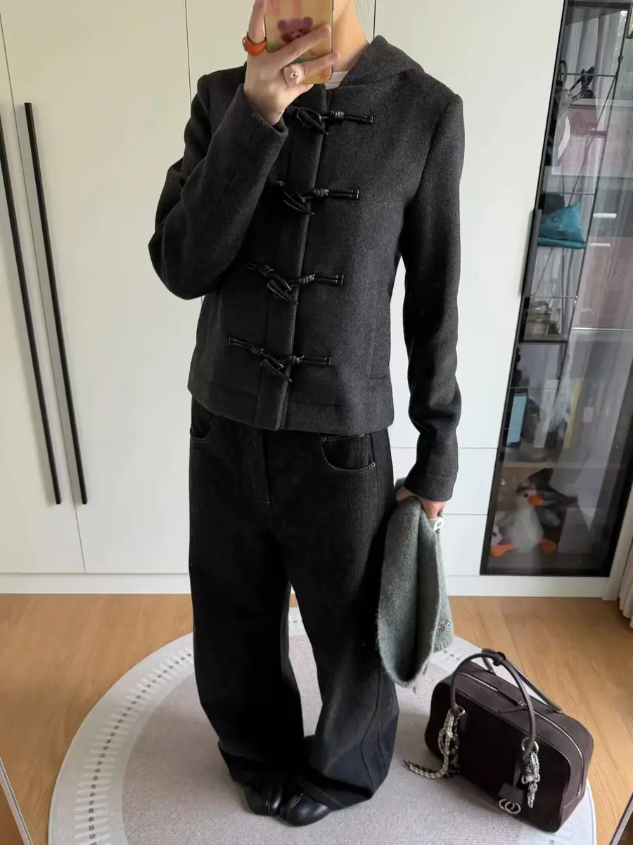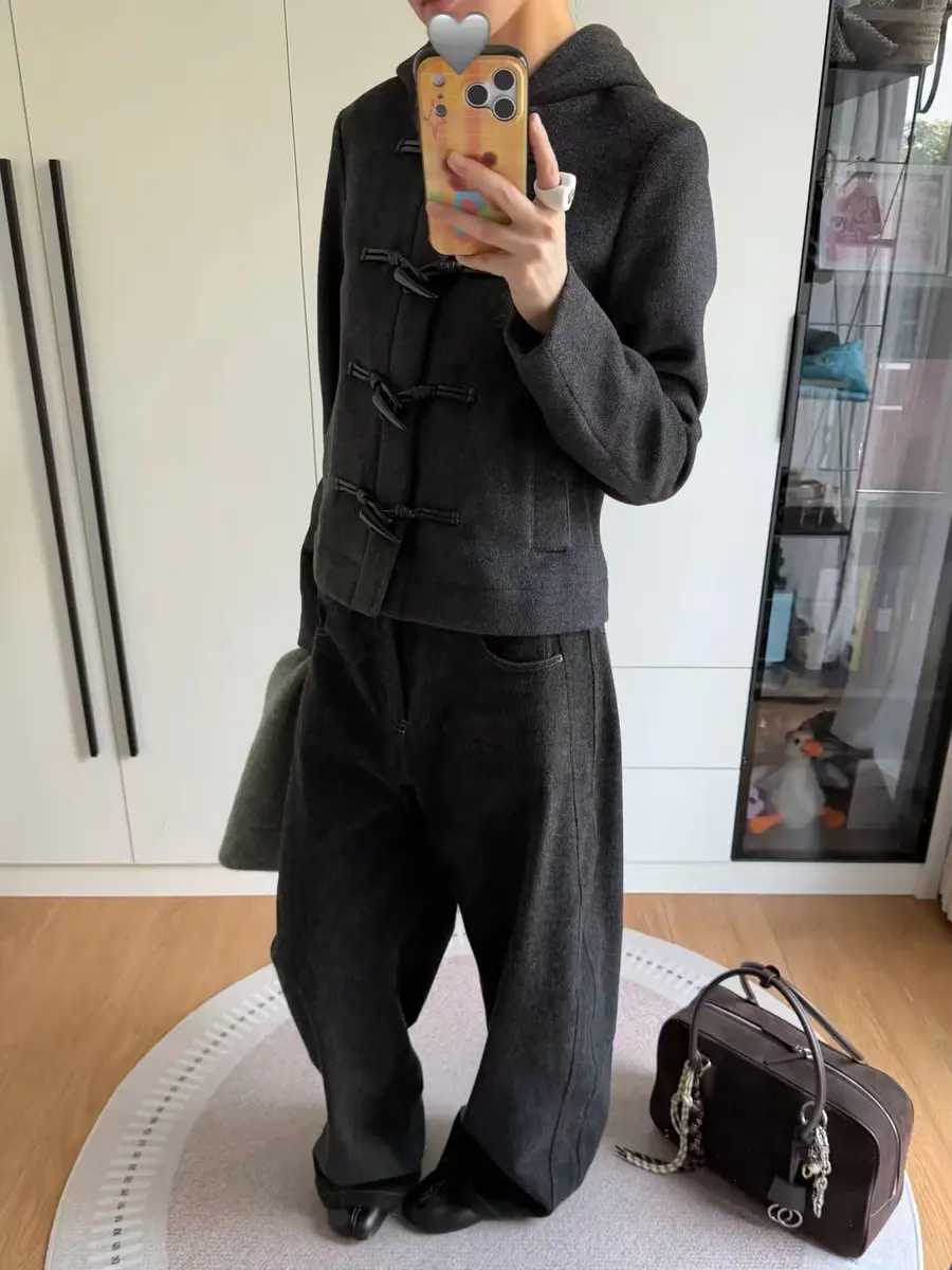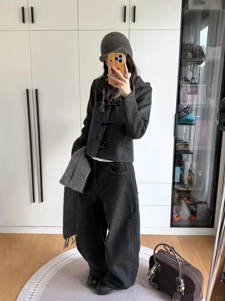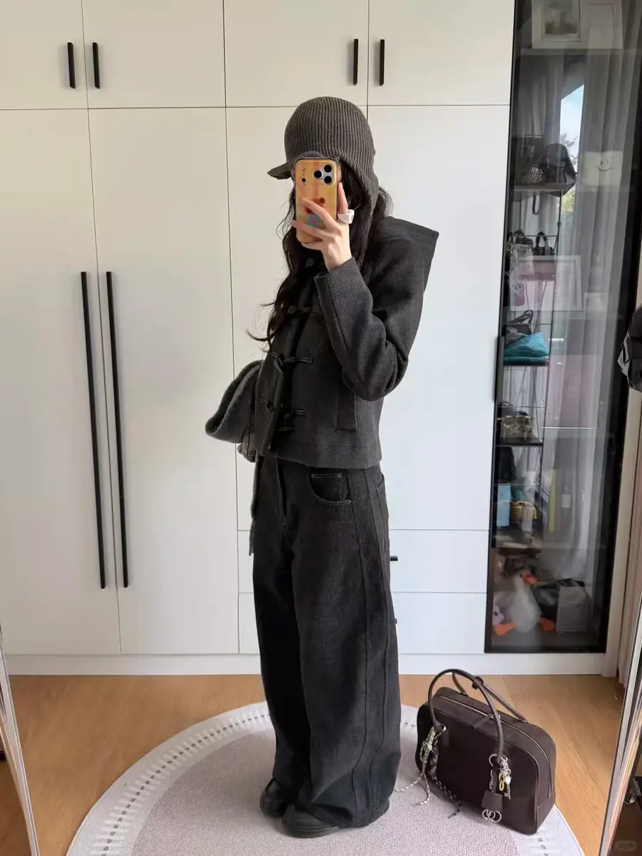 新品上身丨黑灰牛角扣外套+牛仔,宅家随拍的高级感藏不住❄️