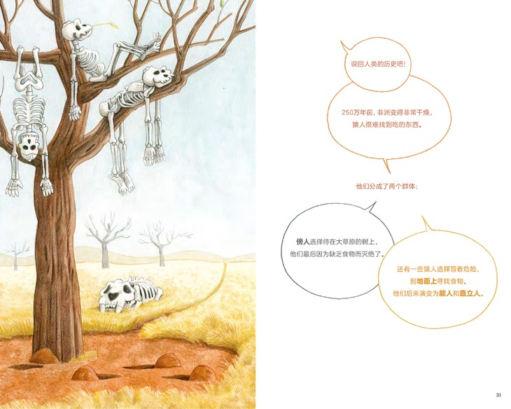进化史中的很多问题都还悬而未决,没有定论,《有趣的人类简史》也经常提到这一点,让孩子们知道,科学研究还有很多等待解决的问题,也许你就是下一个探索者!