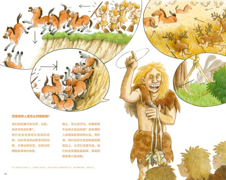 到了尼安德特人时期,他们有了更多办法,比如把大型动物逼到悬崖边上,让它们无路可逃,再用长矛、长枪这样的武器制服猎物;