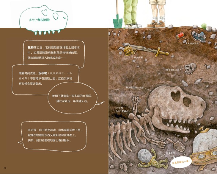 在讲到古人类学家的考古挖掘时,书里有一幅描绘地底下的图画——