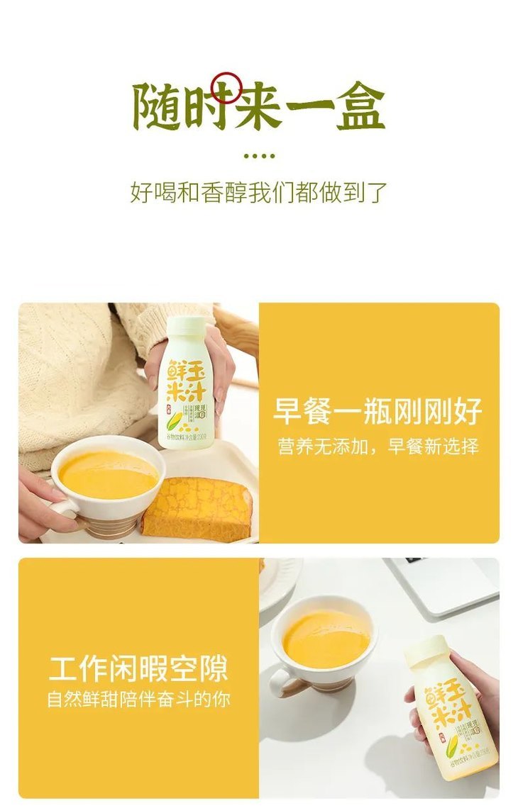 六养鲜玉米汁采用新鲜玉米,现罐现榨,