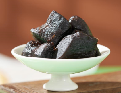 这种经历时间沉淀的老陈醋,色泽黑紫,口感绵、酸、甜,回味悠长,在炮制过程中,能够更好的溶解姜的辣味。