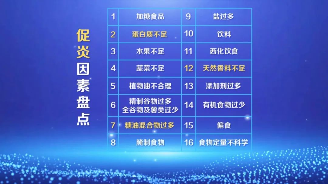 营养科洪主任总结了16种促炎因素,你可以根据如下的表格马上自测!