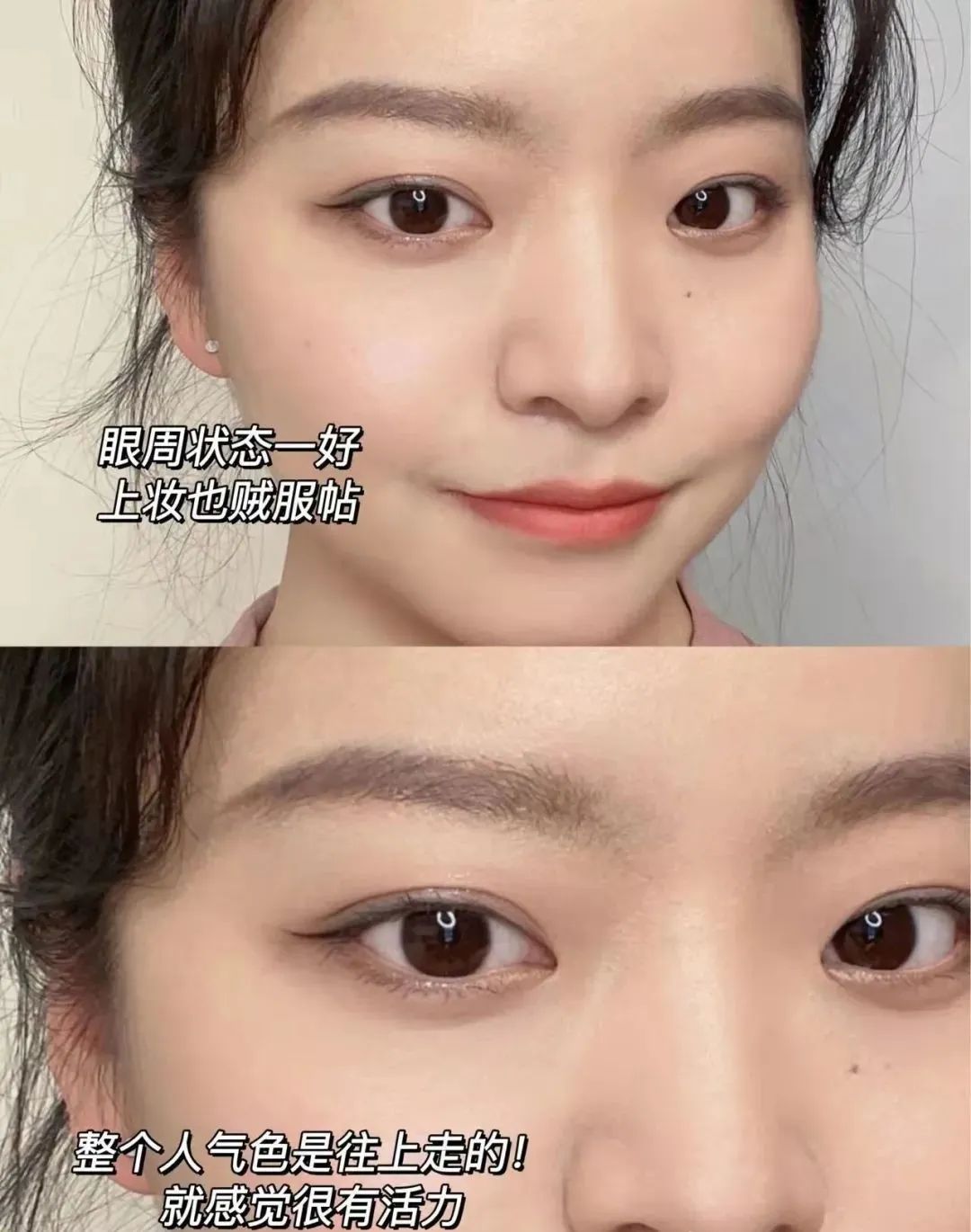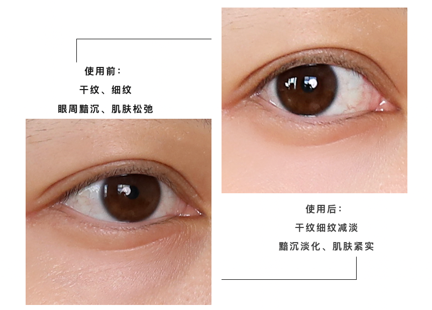 坚持使用就会感觉眼周边紧致了尤其是眼尾,不会像以前那么下垂,眼睛看起来都更大更有神了。