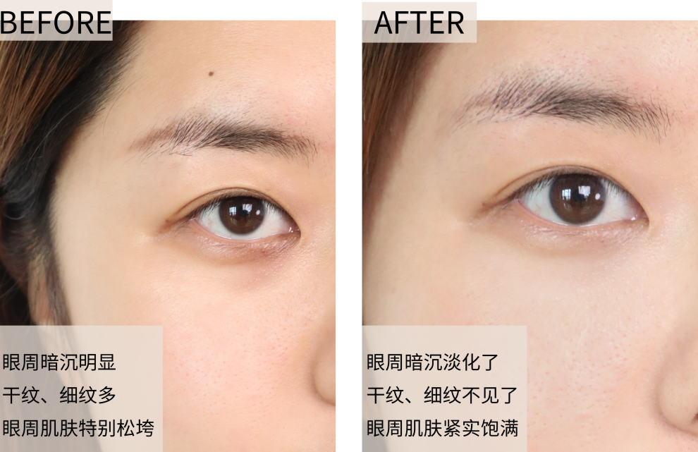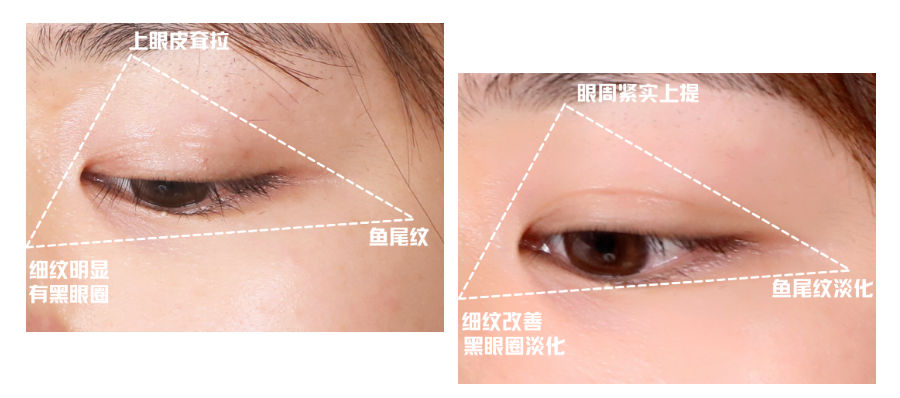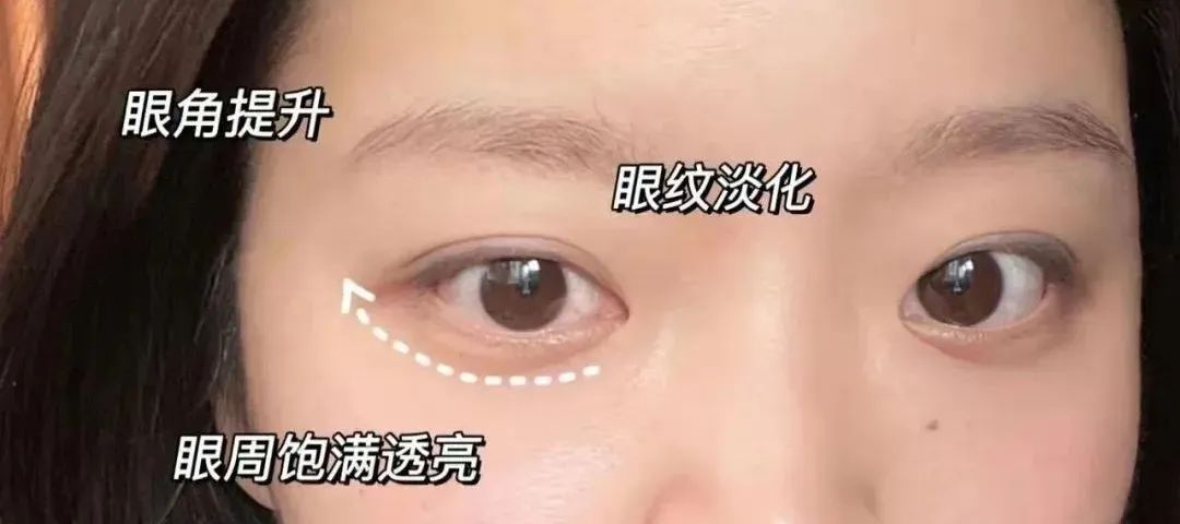 相当于为皮肤注入了隐形抗老能量,把我们松弛下垂的眼角给提拉上去!