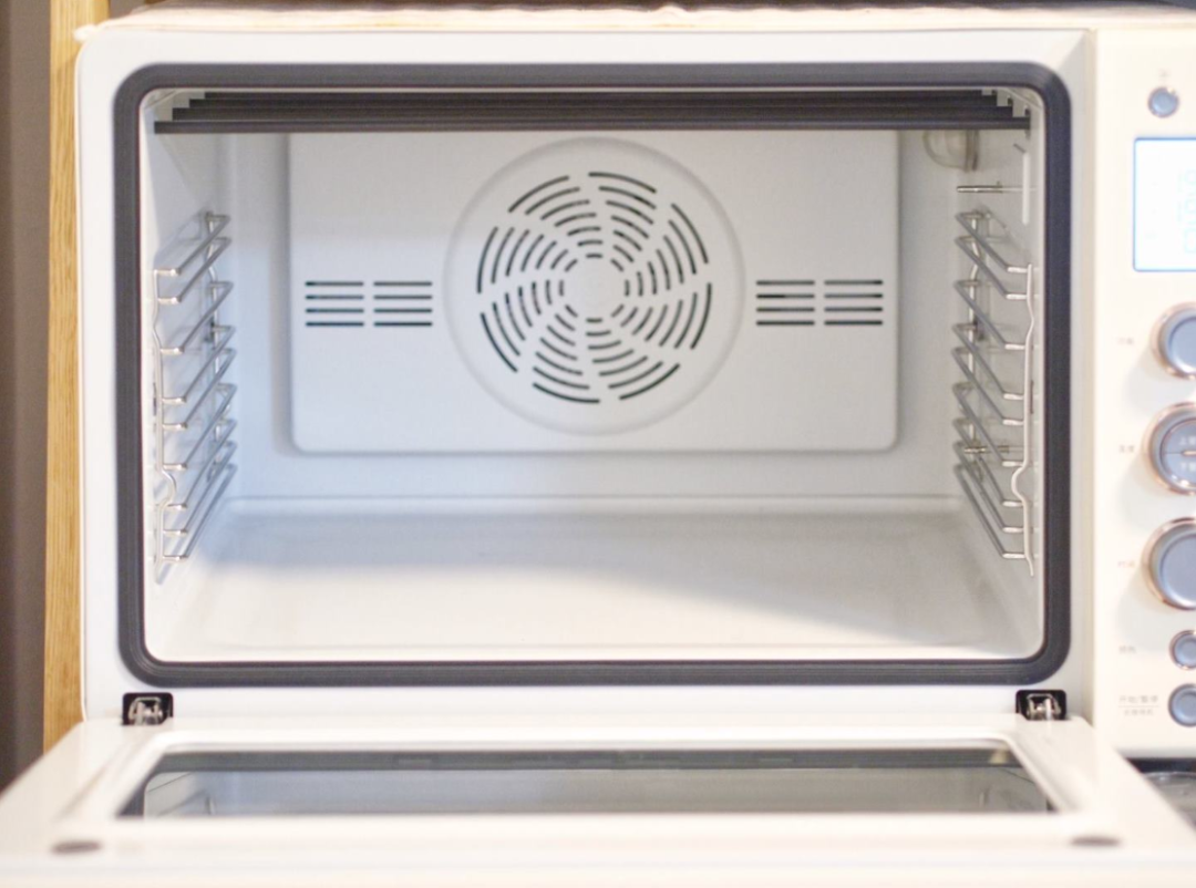 百元价位的烤箱虽然也有热风循环模式,但只是一个小风扇,吹出来的是冷风,反而会影响温度稳定,出现温差波动。