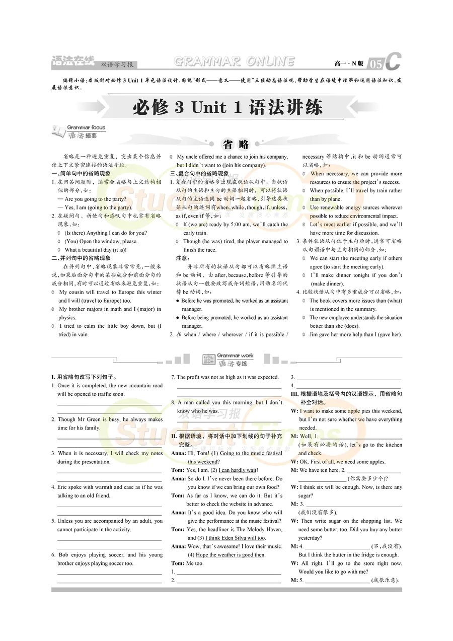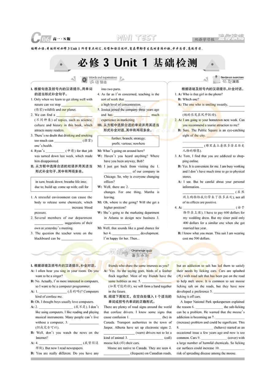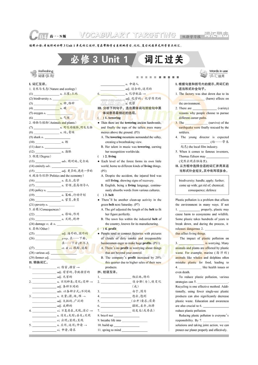 高一 N版同步辅导 C刊(下学期)