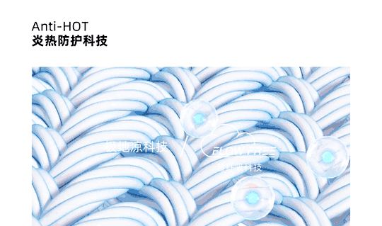 在细腻软性纤维中注入高稳定性凉感粒子,大大强化纤维散热效率,提升触肤凉感体验。