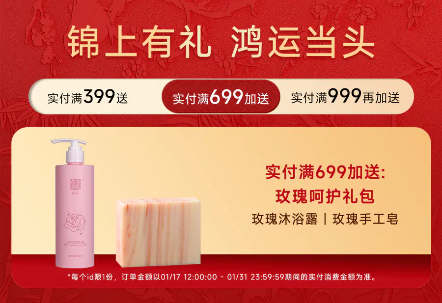实付满699加送:玫瑰呵护礼包:玫瑰沐浴露+玫瑰手工皂