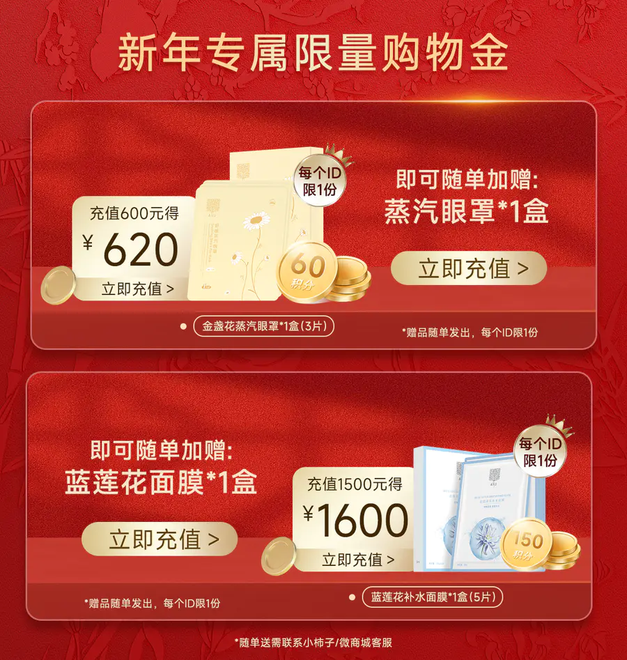 充1500🉐1100,随单送蓝莲花面膜1盒
