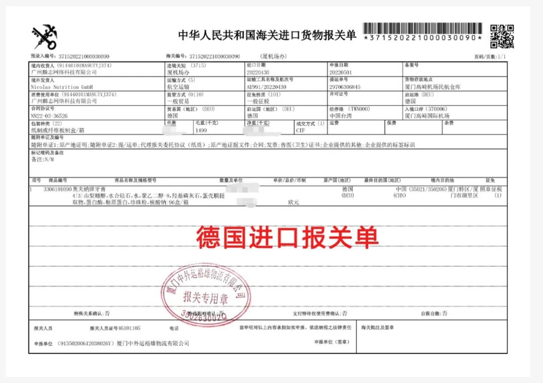 德国进口,报关单给到大家,经过多家医院和专业机构认可的小金管牙膏,放心入!