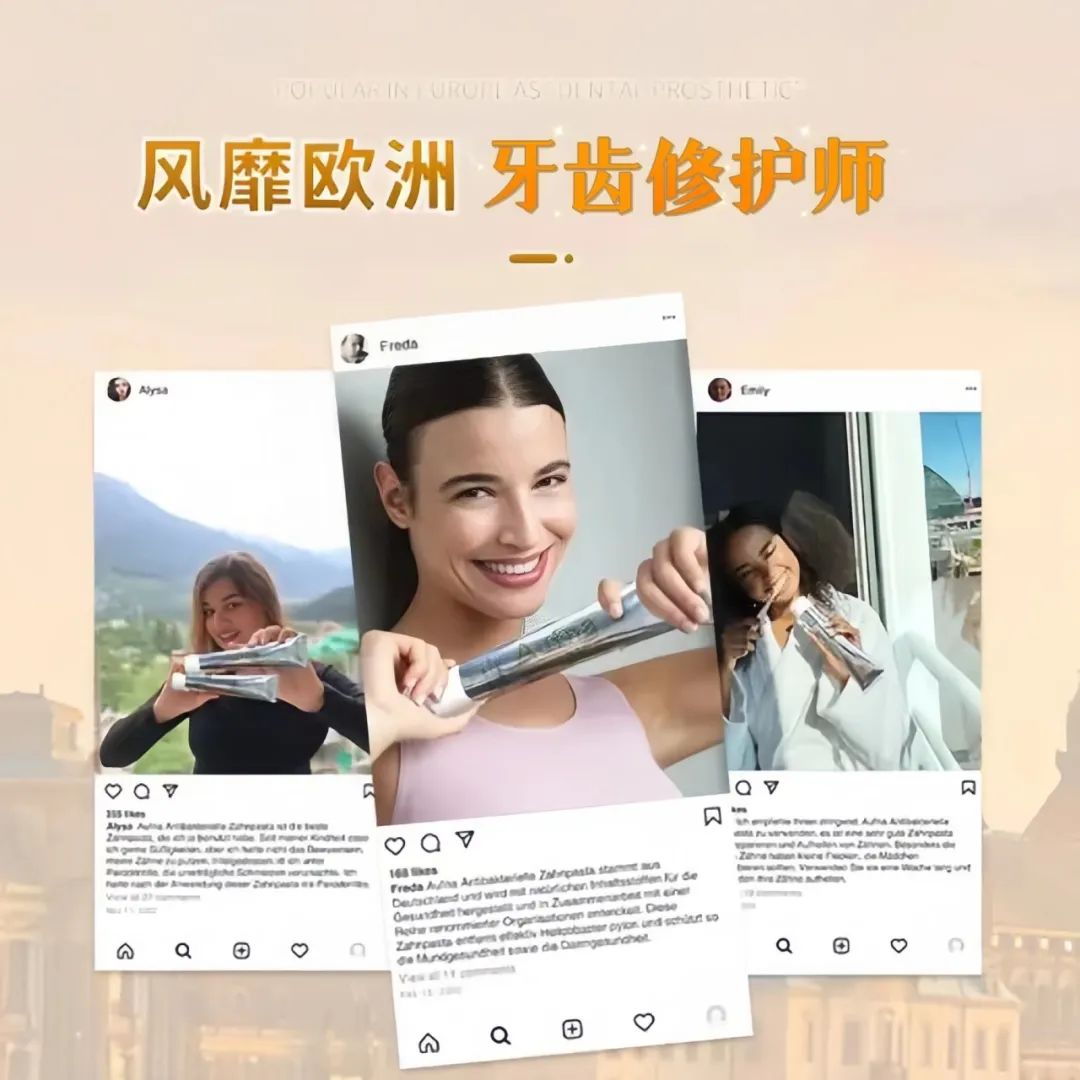 后来,这项技术经过多项研究,应用到了牙护类产品中,诞生了这款德国Aufna奥夫纳鎏金修护牙膏,俗称小金管牙膏,欧洲人的“牙齿修护师”!让你的烂牙变新牙!