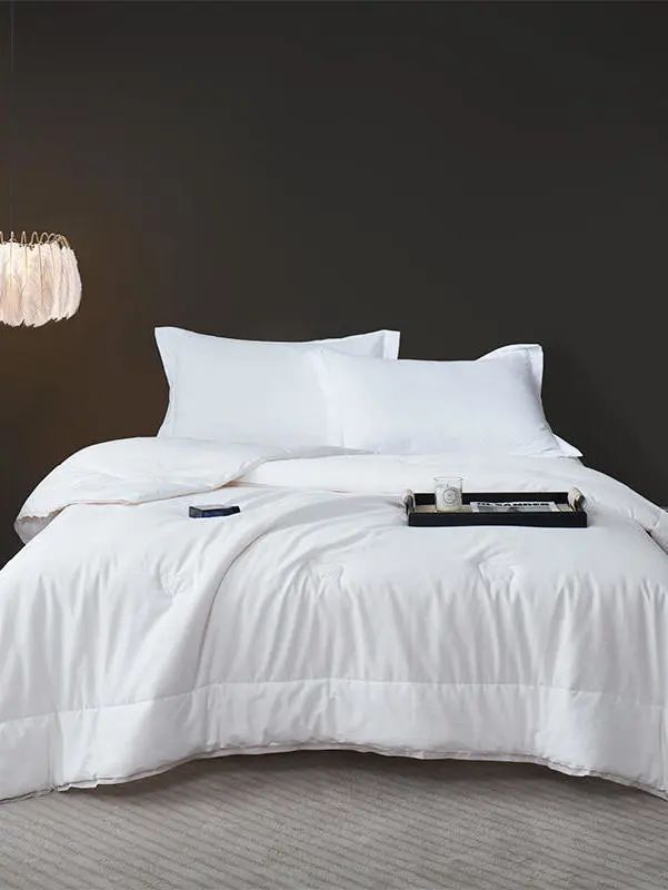 换季换被,嘉人羊毛被,全棉面料+澳洲进口羊毛,鹅绒硕大,绒核饱满羽翼纤长,绒子含量高达95%, 保暖加倍,透气干爽,亲肤舒适,绗缝工艺,定位明确,不变形,不跑毛,不管怎么团怎么压都不易结板,蓬松匀称!柔软舒适加倍,给你元气满满的精神。