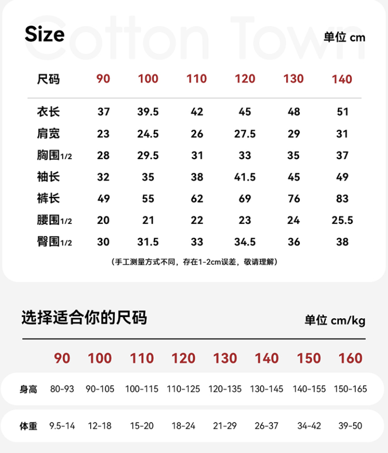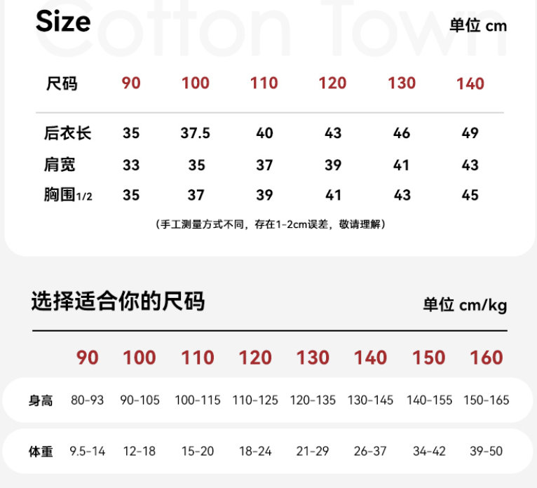 给大家做了90-160整整8个尺码,适合各个年龄段的孩子穿。